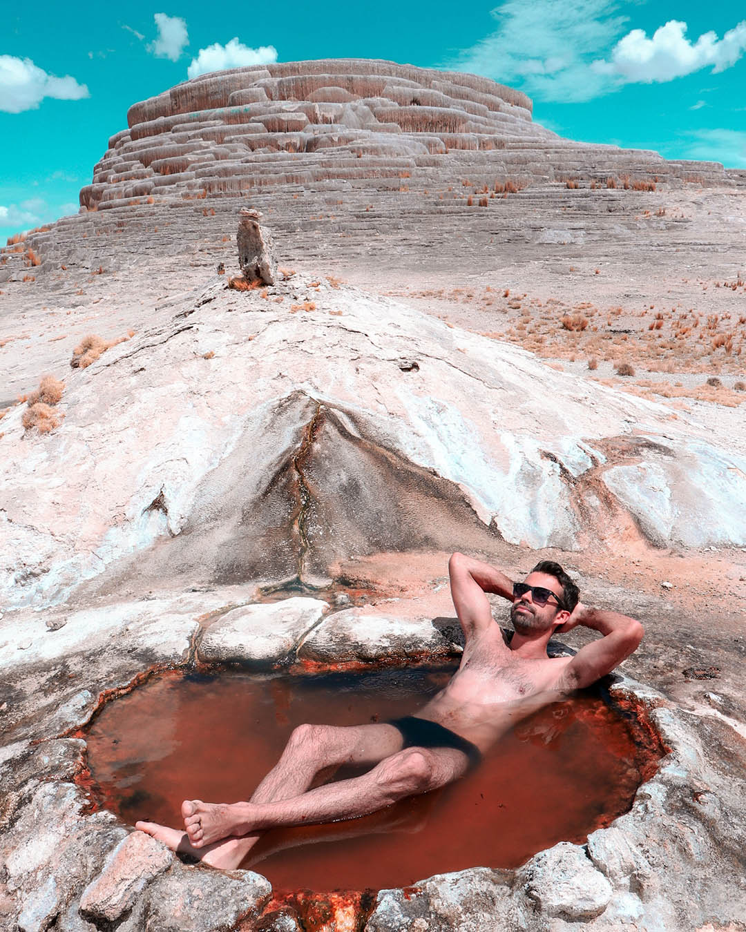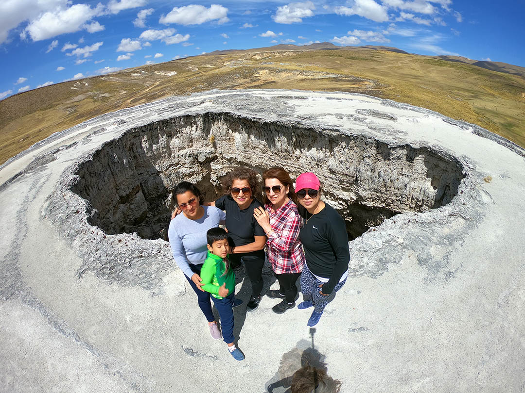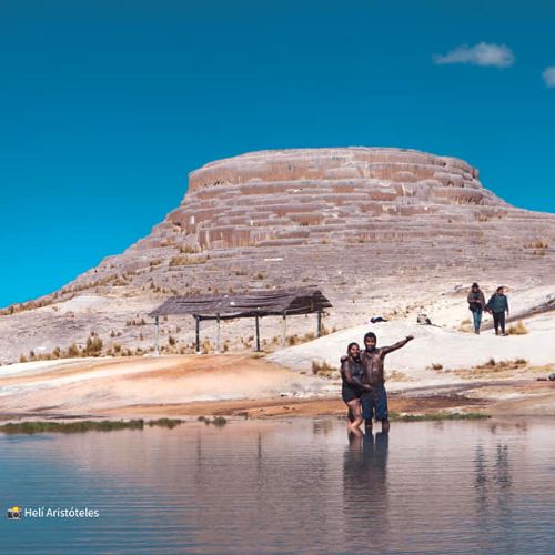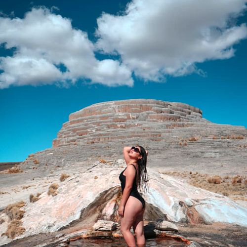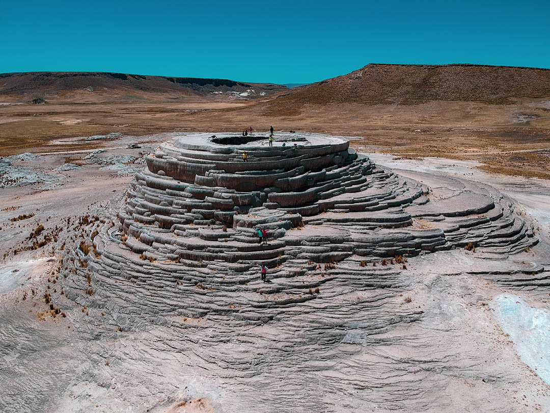 Tiene una altura aproximada de 30mts. El acceso a la parte superior es por unas escaleras las mismas que están formadas naturalmente, donde se aprecia una abertura de 8 a 10 mst. de diámetro, al fondo se observa la presencia de agua en estado de ebullición permanente. Alrededor de este monumento existen pozos pequeños rústicos de aguas termominero medicinales que emanan un olor penetrante a azufre. Según manifestaron los pobladores que sus aguas tienen